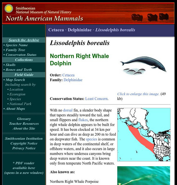 National Museum of Natural History: American Mammals: Northern Right Whale Dolphin