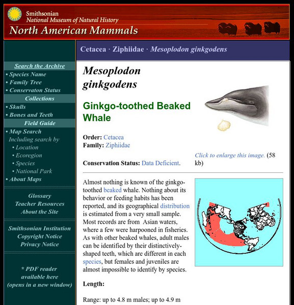 National Museum of Natural History: American Mammals: Ginkgo Toothed Beaked Whale