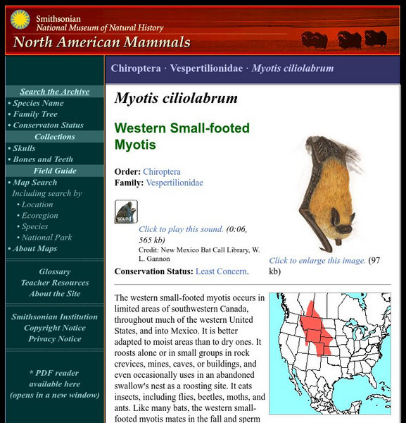 National Museum of Natural History: American Mammals: Western Small Footed Myotis