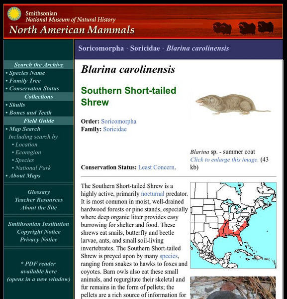 National Museum of Natural History: American Mammals: Southern Short Tailed Shrew