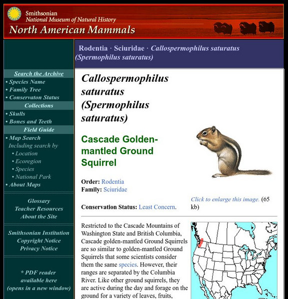 National Museum of Natural History: American Mammals: Golden Mantled Ground Squirrel