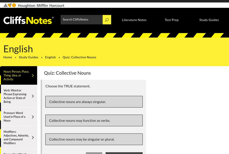 Houghton Mifflin Harcourt: Cliffs Notes: Quiz: Collective Nouns