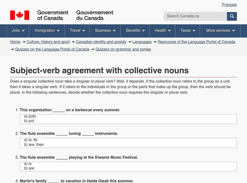 Language Portal of Canada: Subject Verb Agreement With Collective Nouns