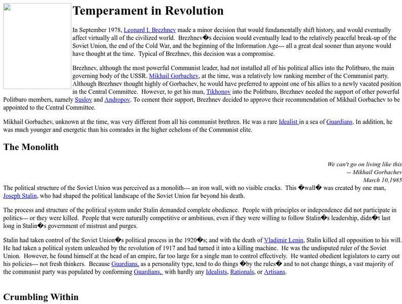 An excellent article about Gorbachev's appointment, goals, accomplishments, and personality.