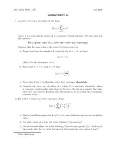 In this math worksheet, students sketch and label on a number line the regions that converge and diverge with the sequences. Then they examine a smooth function and define its series.