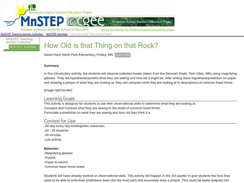 Students using magnifying glasses to observe collected fossils, and then make inferences and hypotheses about the age of the specimens.