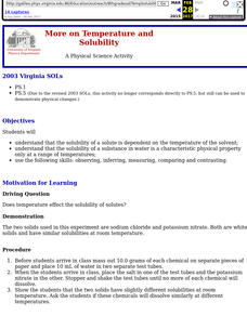 Students discover how temperature effects the solubility of solutes by experimenting with a range of temperatures. They develop skills for observing, inferring, measuring, comparing and contrasting.