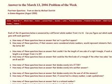In this algebra activity, 11th graders answer a variety of questions dealing with math and science. They match the letters in the questions to the number of the questions. There are 14 questions with an answer key.
