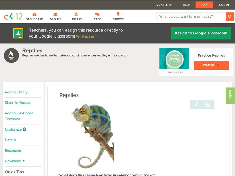[Free Registration/Login may be required to access all resource tools.] What reptiles can you name? Snakes, alligators, and crocodiles are all reptiles. Modern reptiles live on every continent except Antarctica. They range in size from...