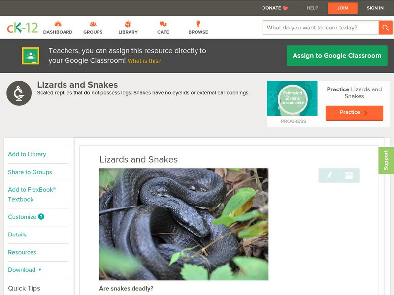 [Free Registration/Login may be required to access all resource tools.] Lizards and snakes belong to the largest order of reptiles, Squamata. Lizards are a large group of reptiles, with nearly 5,000 species, living on every continent...
