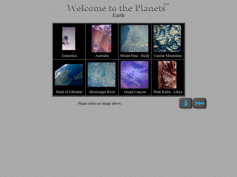 Images of specific locations on the surface of the Earth, taken from space, along with descriptive captions.