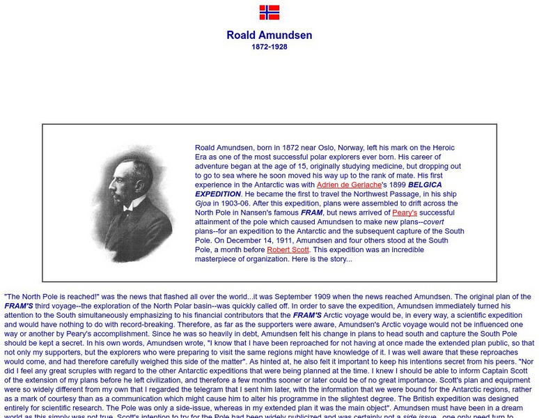 This site is on Amundsen (1872-1928 CE), the leader of a Norwegian expedition, races Robert Scott's group to the South Pole.