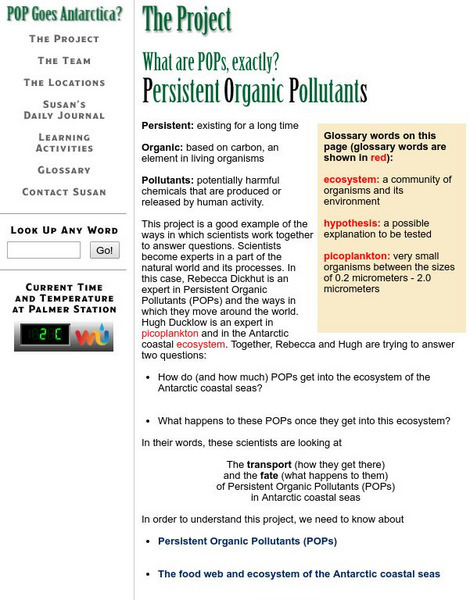 Use this site to learn about the effects of persistent organic pollutants on the ecology of Antarctic coastal waters. Information is presented for both teacher and student researcher.