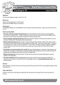 Students count and recognize numbers to 10. In this math lesson students play a CD-ROM game Mouse in the House: Blast Off. Support worksheets are also included.