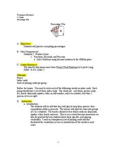 Fifth graders explore fractions by participating in a card activity in class. In this percentages lesson, 5th graders inventory the amount of different cards in a deck in order to determine the percentages of getting a certain card....