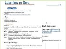 Students research the exploration of Antarctica by the explorer Sir Ernest Shackelton. In this Antarctic exploration lesson, students watch a movie about Sir Ernest Shackelton and his ship the Endurance. Students study a map of...