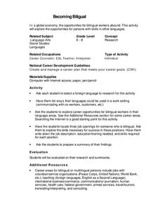 Students explore the opportunities for bilingual workers. In this bilingual skills instructional activity, students select a foreign language to research and list ways their languages can be used in a work setting. Students explore...