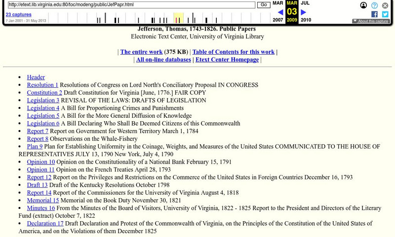 University of Virginia: Thomas Jefferson's Public Papers