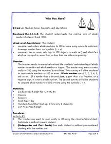 Pupils engage in a lesson that is concerned with the standard of comparing the quantities of whole numbers using different strategies from the concrete to the abstract. They count objects and compare them, use symbols of comparison, and...