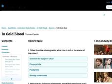 In this online interactive reading comprehension worksheet, students respond to 25 multiple choice questions about Capote's In Cold Blood. Students may submit their answers to be scored.