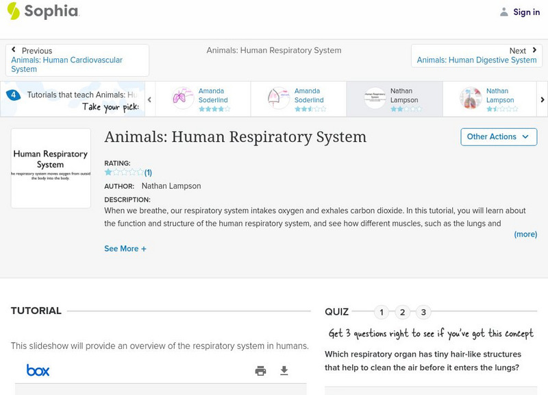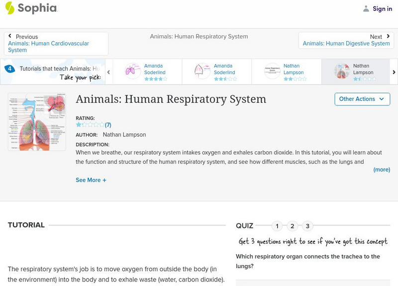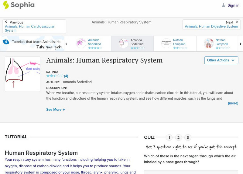 Sophia: Animals: Human Respiratory System: Lesson 3