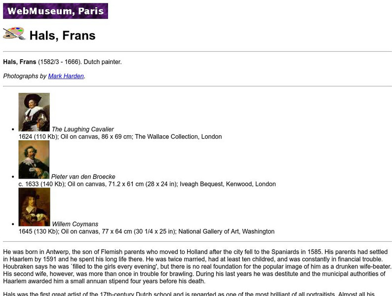 This biographical sketch of the Dutch painter, Frans Hals, is very complete. Some of his work is in the Frans Hals Museum, which is mentioned in the middle paragraph of the article.