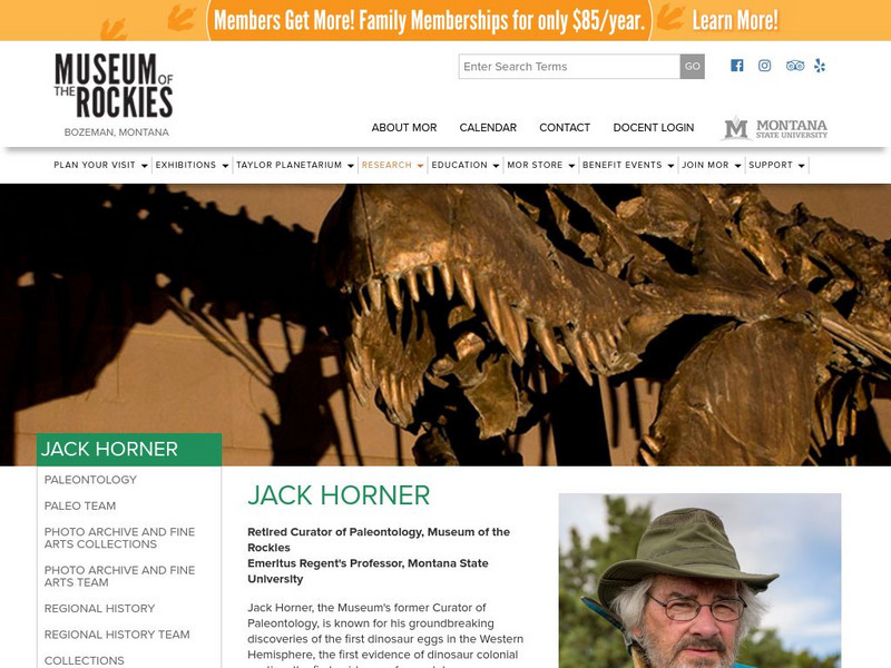 Jack Horner, a well-known figure in the study of dinosaurs, is profiled here. He is responsible for many 'firsts' in paleontology, such as his discovery of the first dinosaur eggs.