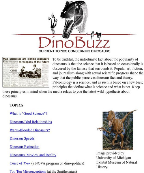 Site details with the current topics concerning dinosaurs. Site covers dinosaur speeds, dinosaur extinction, warm-blooded dinosaurs and more.