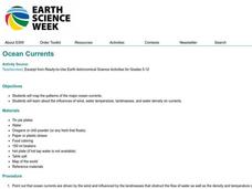 Learners discover the geography of Earth by analyzing water currents. In this oceanography lesson, students create visual references on a map of the globe where and why major ocean currents are moving water. Learners conduct...