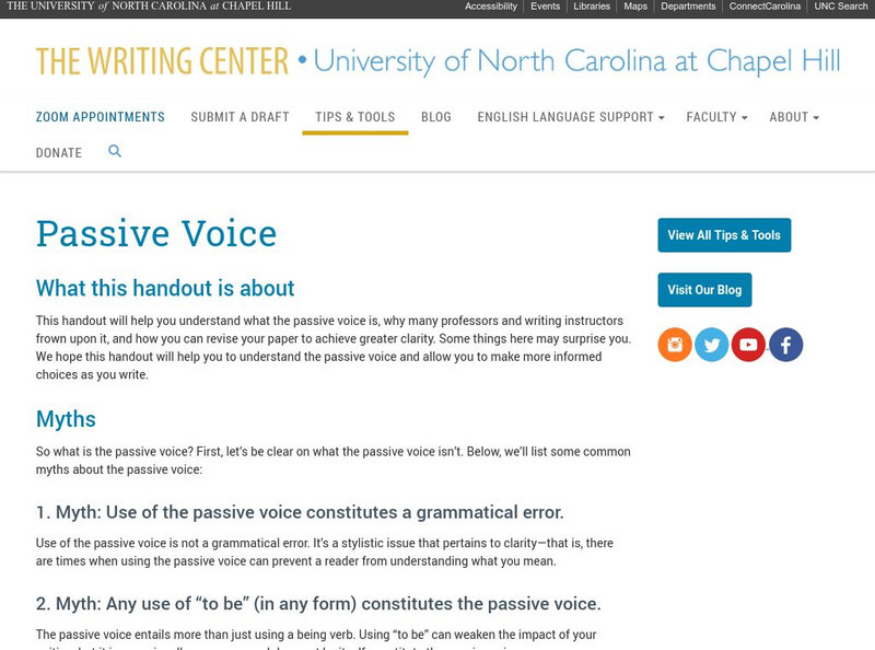 The Writing Center at Unc Chapel Hill: Passive Voice