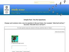 In this English grammar worksheet, students focus on using the simple past tense. Students complete 11 fill in the blank questions and self check on this interactive web page.