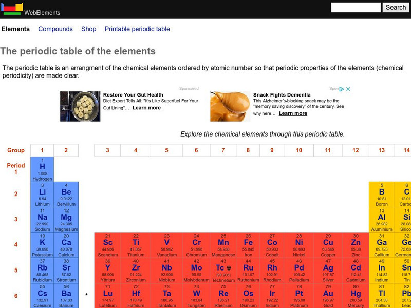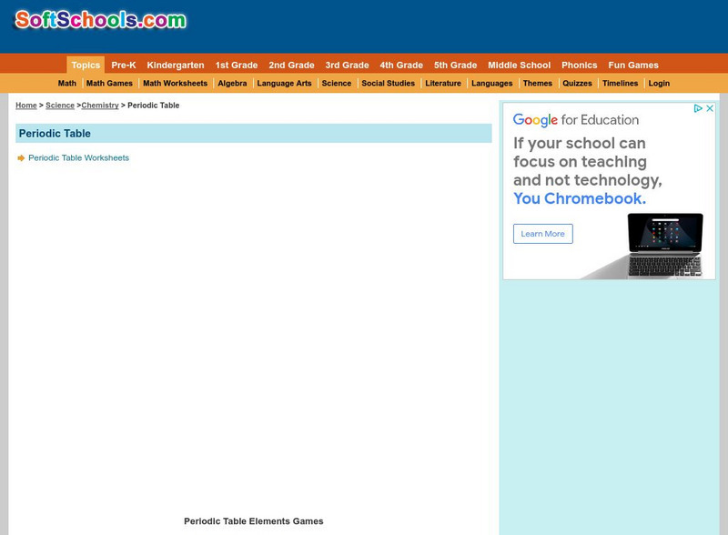 This site has a periodic table on it. When you click on each element, it brings up information about it. Site is organized, detailed, and helpful for learning.