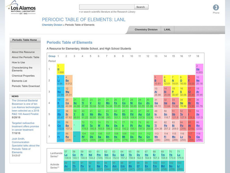 This interactive periodic table of elements allows students to click on each element, and read essential information about that element. Chemical elements are also listed alphabetically for quick reference.