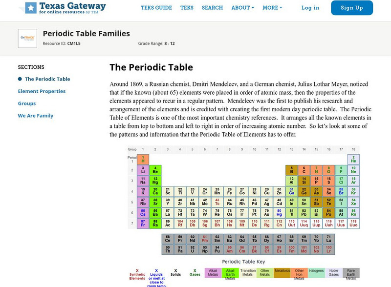 [Free Registration/Login may be required to access all resource tools.] In the following online tutorial students will sse the Periodic Table to identify and explain the properties of chemical families, including alkali metals, alkaline...