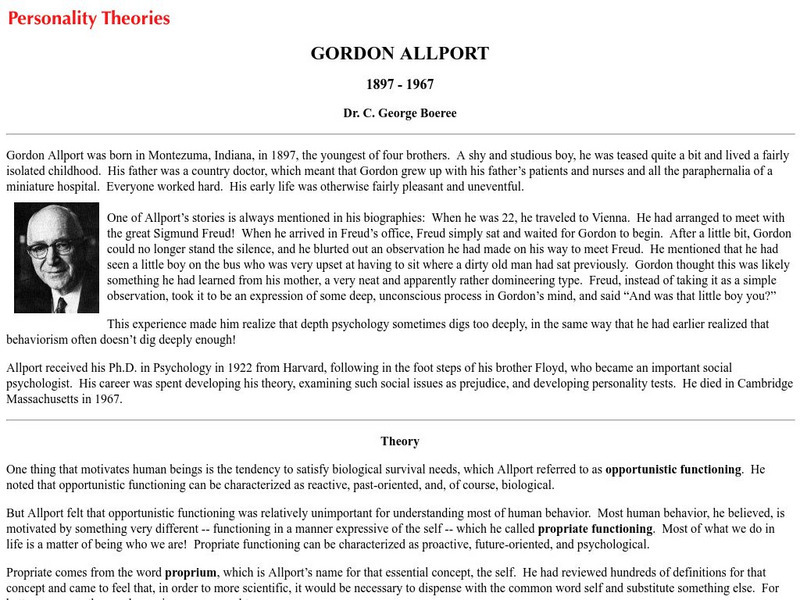 This site, which is provided for by the Shippensburg University contains biographical information about Gordon Allport as well as an introduction to his teachings.