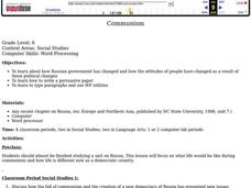 Sixth graders study how Russian government has changed and how the attitudes of people have changed as a result of these political changes, while learning how to write a persuasive paper, type paragraphs, and use WP utilities.