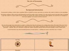 Learners explore political persuasive writing. In this government and persuasive writing lesson plan, students work in groups to write text and create graphics for a brochure describing and promoting a predetermined political...