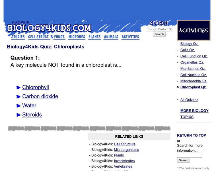 Take this ten-question review quiz over the cell's chloroplasts. Read more about each question after an incorrect answer is given.
