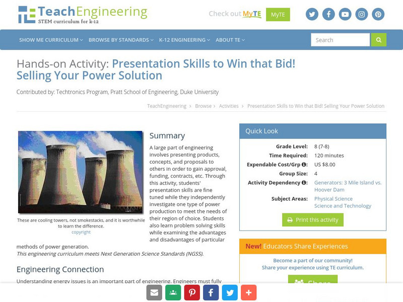 Teach Engineering: Win That Bid! Selling Your Power Solution