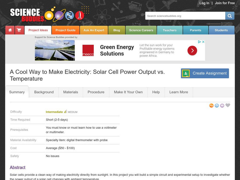 Science Buddies: Solar Cell Power Output vs. Temperature