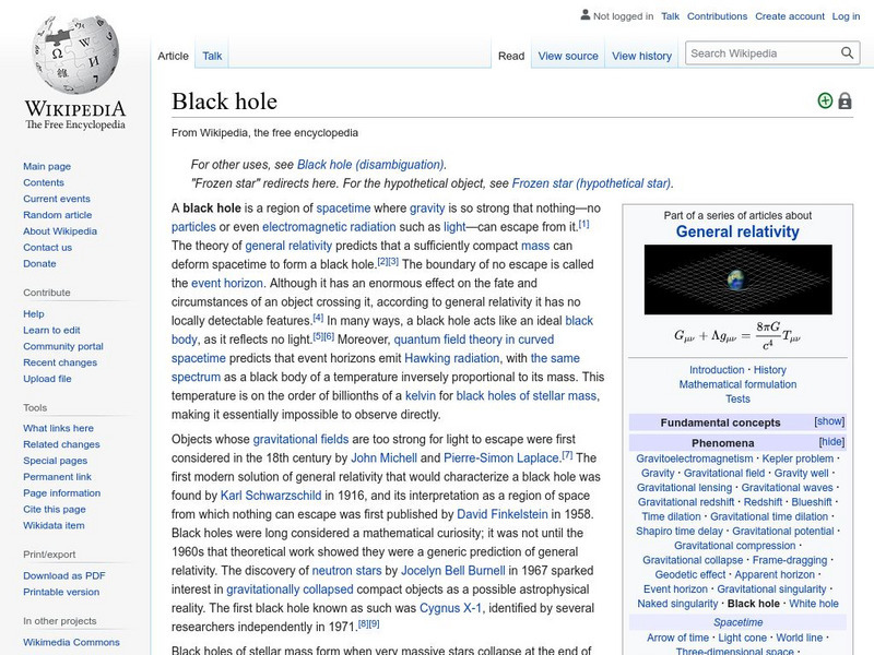 This site examines the black hole as an object in astrophysics. Delve into this comprehensive resource that covers this concept from its history, to qualitative physics, the reality of black holes, mathematical physics and more.