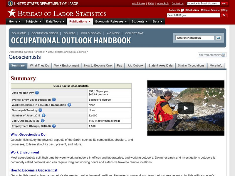 Within the two major disciplines of geology and geophysics are numerous subspecialties of careers. Included: nature of the work, training, advancement, employment, job outlook. projections data, earnings, related occupations. A detailed...