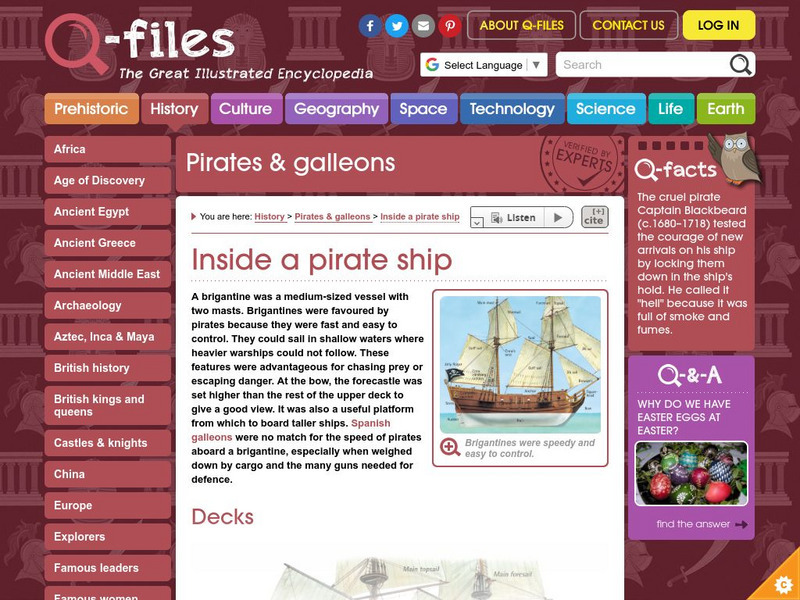 Encyclopeida entry takes viewers inside a pirate ship and teaches us about all of the components from the deck to the Jolly Roger flag.