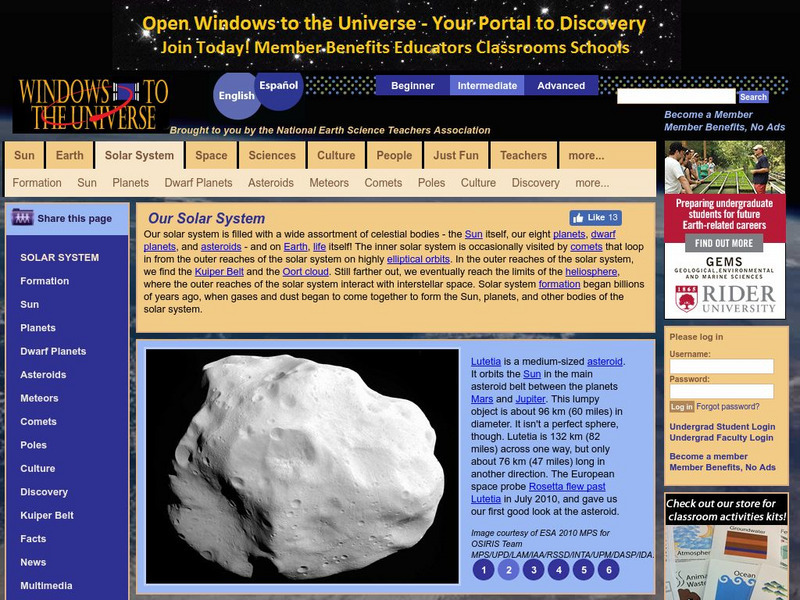 This site from NASA's Space Place is geared towards early elementary learners. It offers detailed instructions for crafts and activities related to space, games and a teacher resource area. Students can also ask an expert at this site.