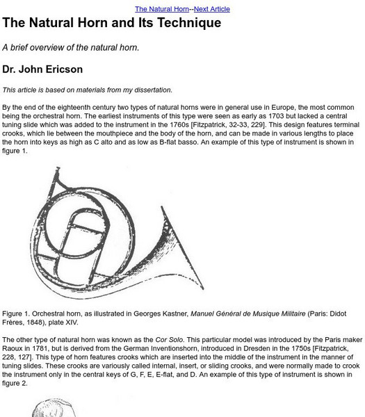 Arizona State's descriptions of the horn are broken up by illustrations of the horn, players, and music. There is a big discussion of crooks (not the kind that go to jail), but the kind that are made when you bend metal! The author notes...