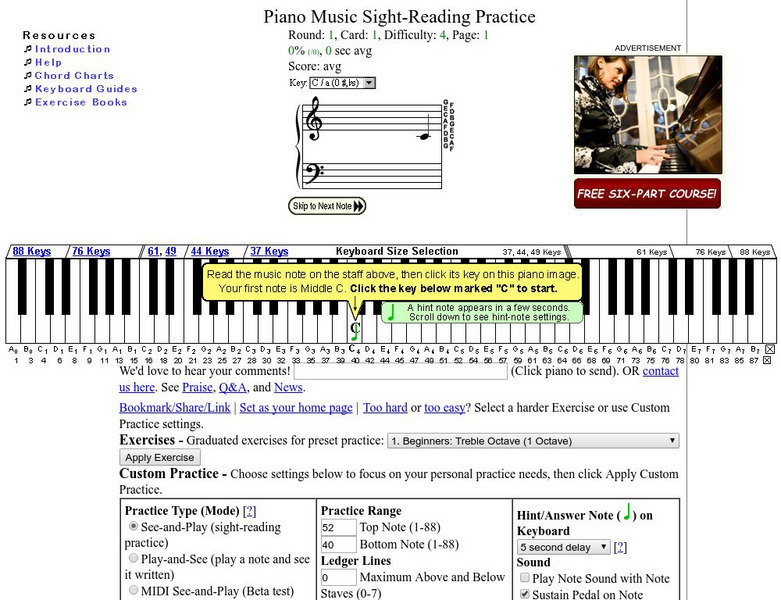 Actually this clever site drills pianists on note names and note placement on the keyboard. Kids can access this site at home for practice. Both treble and bass clef are used.