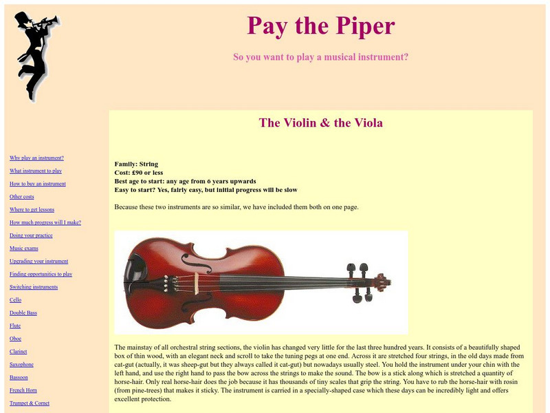 This informative article on the violin and viola includes the advantages and disadvantages of choosing to play one of these instruments. This website includes information on playing, maintaining, and repairing the violin and viola....