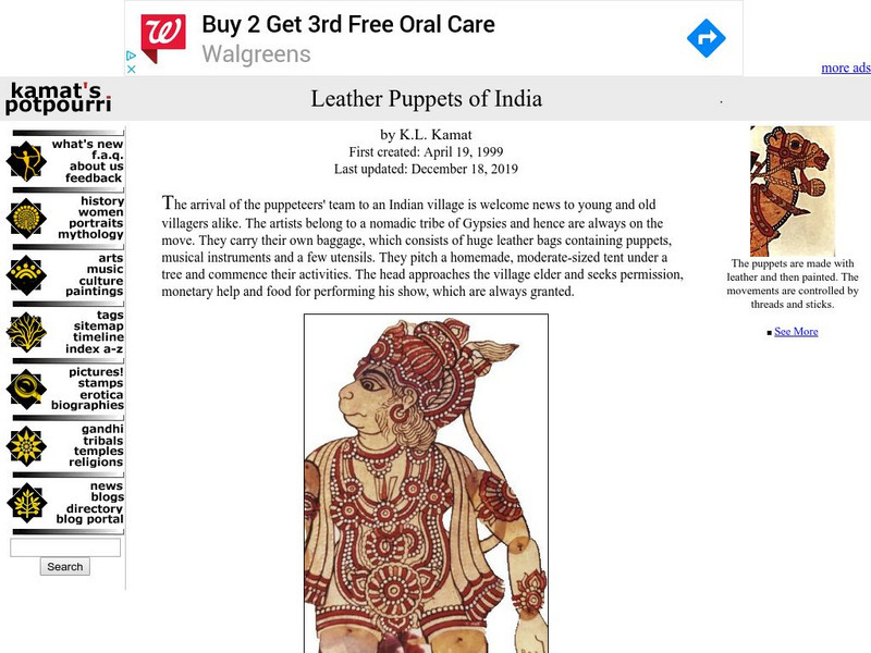 Use this site to learn about the fascinating world of Gypsy-made leather puppets. This nomadic tribe is always on the move carrying their puppets and musical instruments seeking permission from village leaders to perform for monetary...