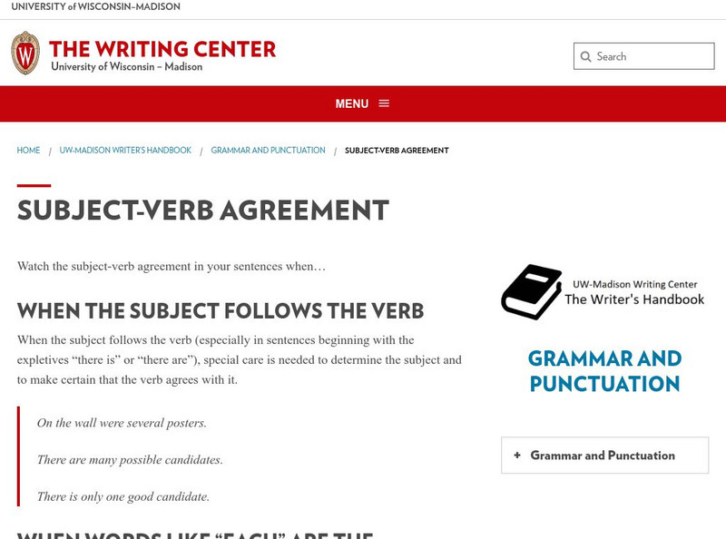 University of Wisconsin, Madison: Subject Verb Agreement