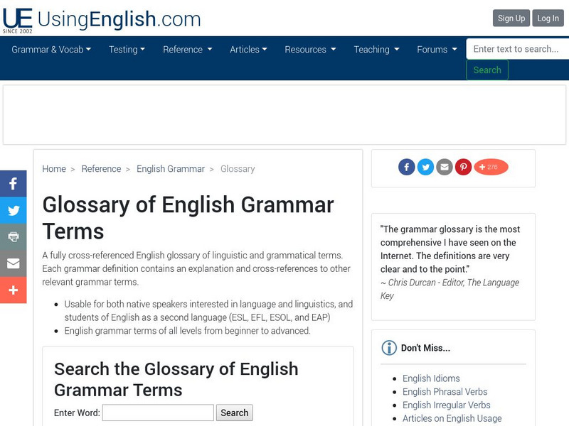 Using English: Glossary of English Grammar Terms